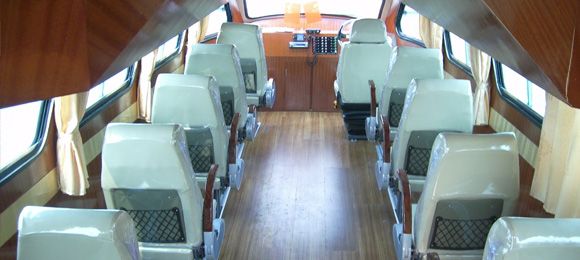 玻璃鋼全棚艇,內(nèi)裝舒適豪華,航行平穩(wěn),可作交通旅游、巡邏執(zhí)法用。