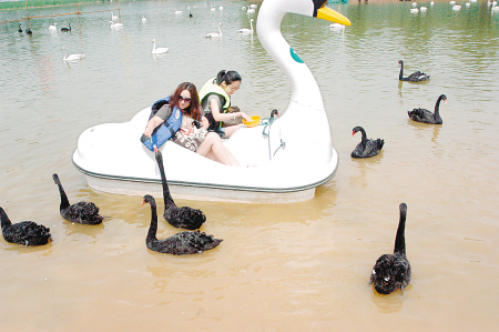 栩栩如生,特別適合于生態(tài)濕地公園休閑娛樂(lè),可乘2大1小。